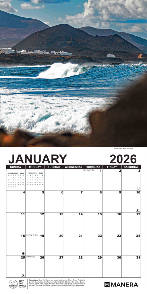 The new Global Surf 2025 Calendar features amazing waves and lineup photos from around the world and is the only surf calendar backed by the surf industry. This calendar is a benefit for the Save the Waves Coalition and promotes our environmental mission to protect surf ecosystems around the globe. Photographers include Alan Van Gysen, Damien Poullenot, Jared Jeffs, Connor Trimble, Brady Burelson, Brian Siebert, and many others.